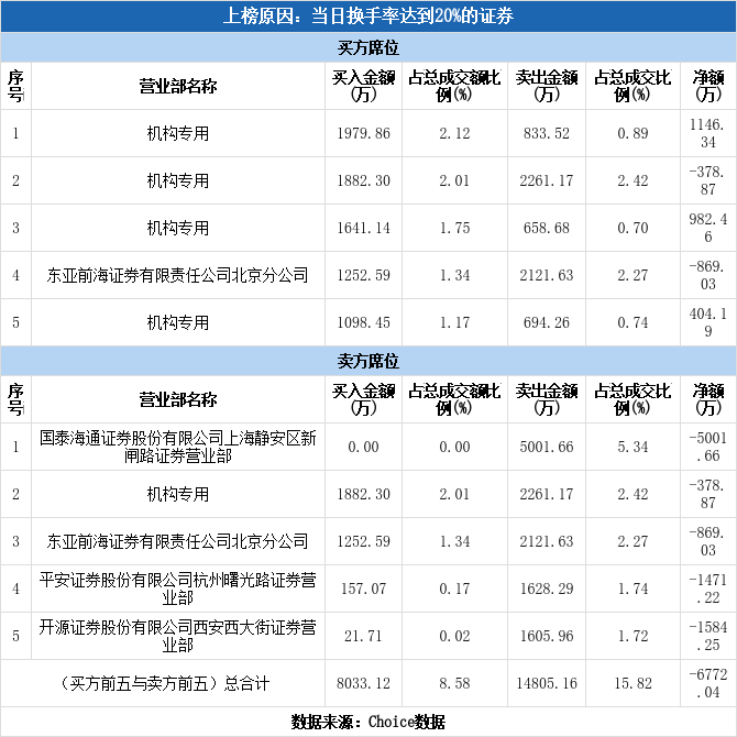 多主力现身龙虎榜,京能热力换手率达35.25%(10-21)