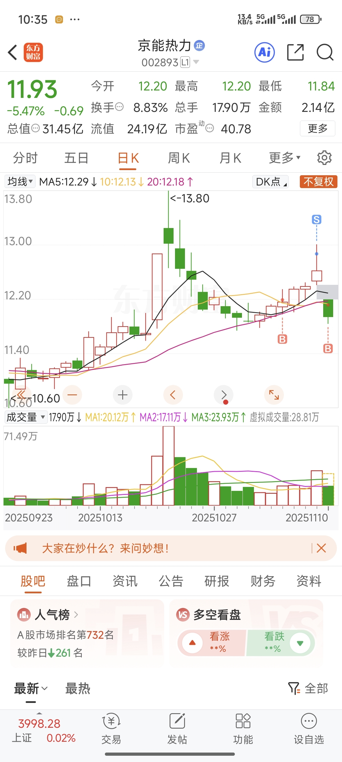 $京能热力(SZ002893)$ 这是头疼,没看到减持公告低开就杀进来了,买进来就傻眼了