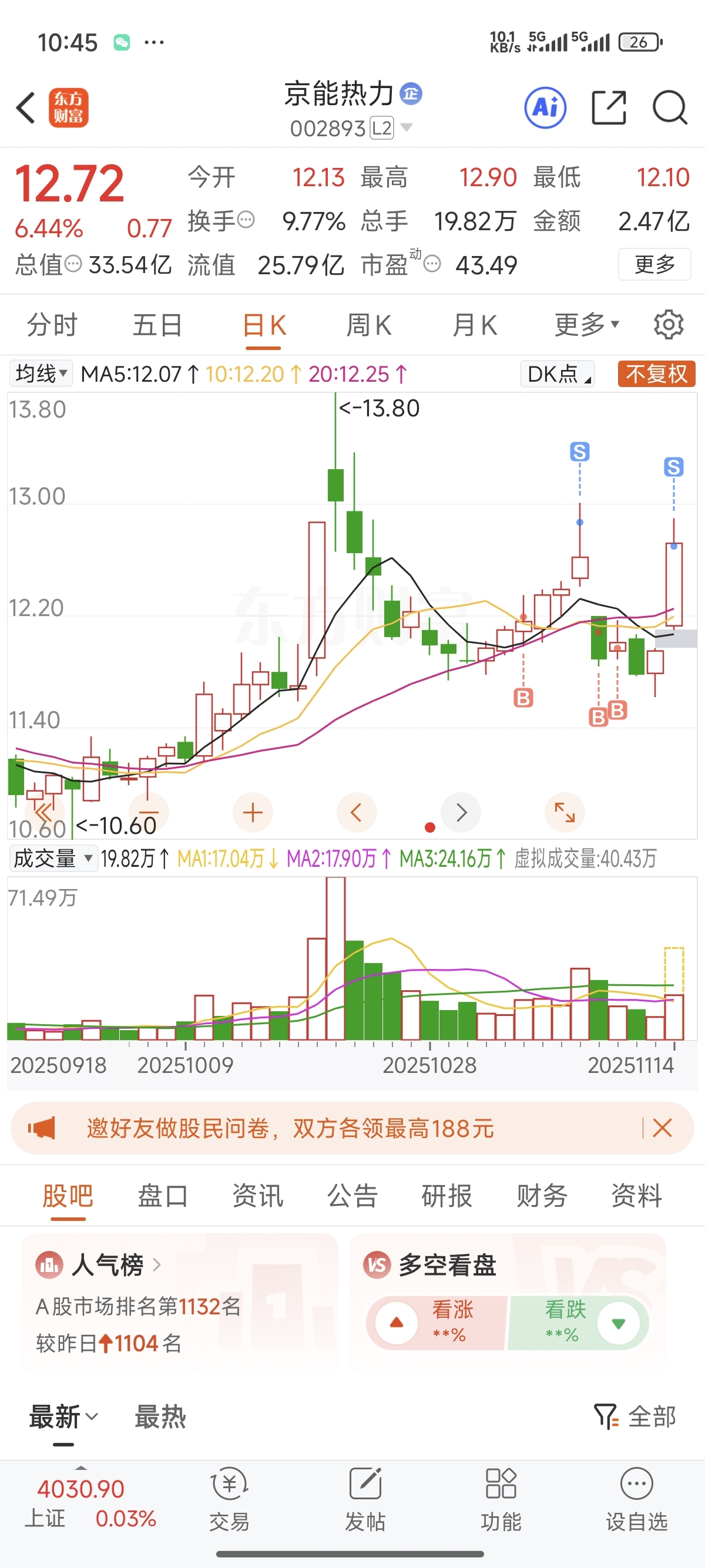 $京能热力(SZ002893)$ 节奏大致正确,继续等机会再吃