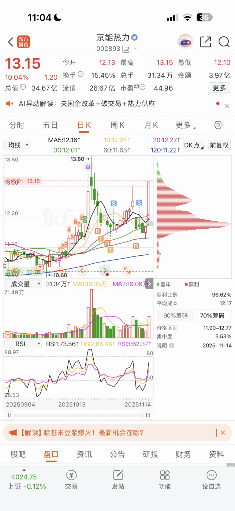 $京能热力(SZ002893)$ 这个跟燃气的,我手里燃气太多了,所以想着今天不买热力了,可惜,认知不够,格局不够