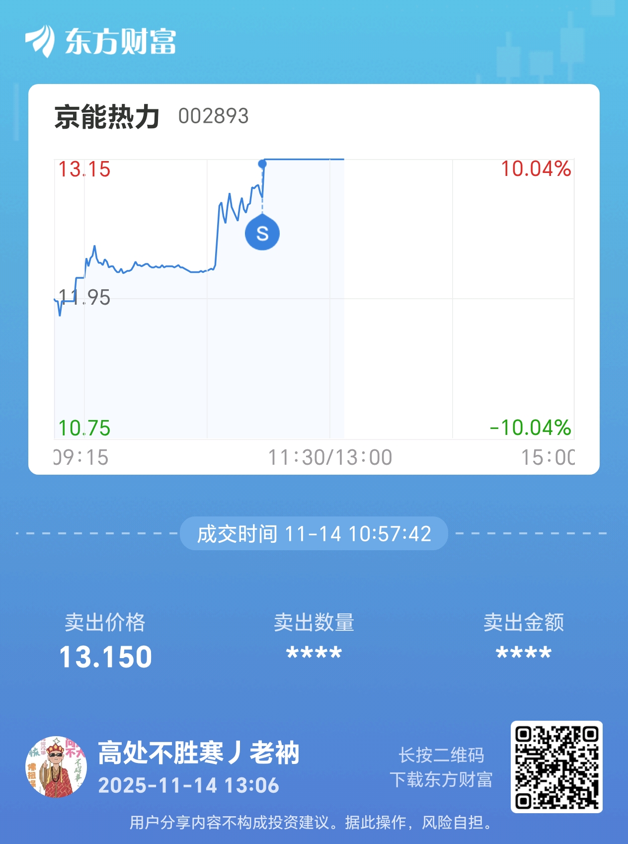 $京能热力(SZ002893)$ 兄弟们我先走2/3了
