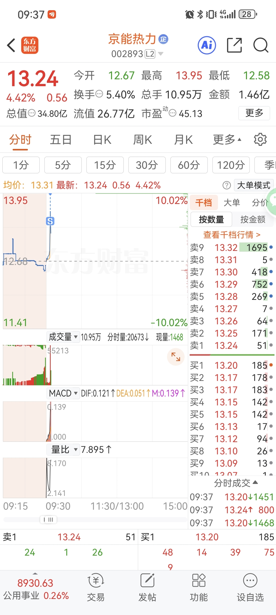 $京能热力(SZ002893)$ 刚睡醒就给我个惊喜