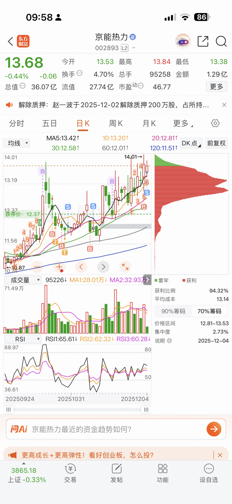 $京能热力(SZ002893)$ 本来想着今天拉到昨天收盘价上方卖的,因为我看着基本上日线第二天都有溢价,最高点都高于前一天收盘价,但是我看到这货烦人