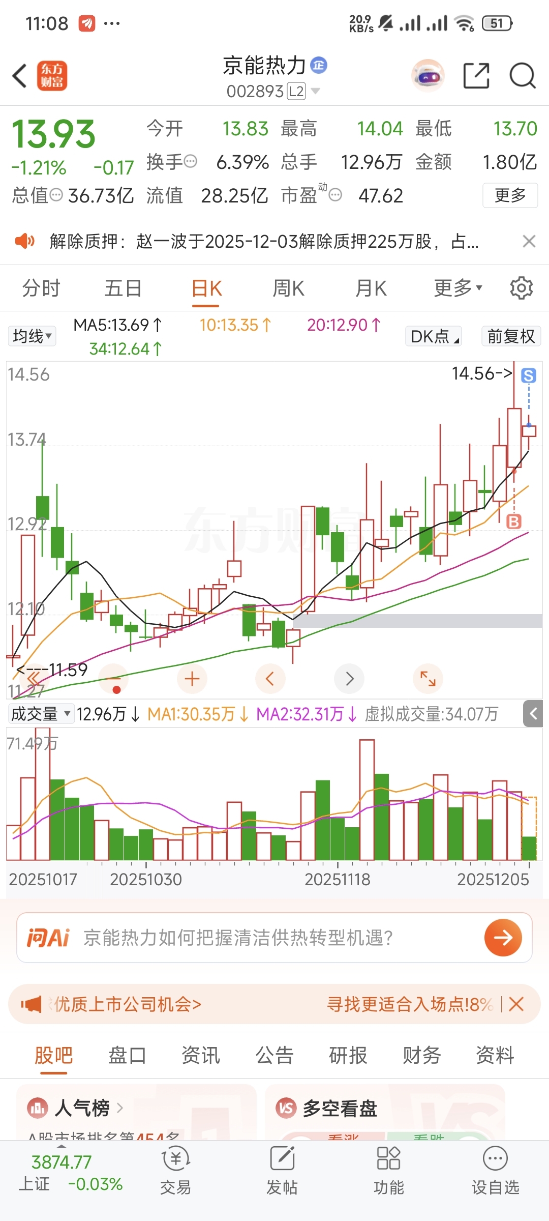 $京能热力(SZ002893)$ 走了,我去抓妖了,短期不可能主升的,抓妖去,抓完再回来
