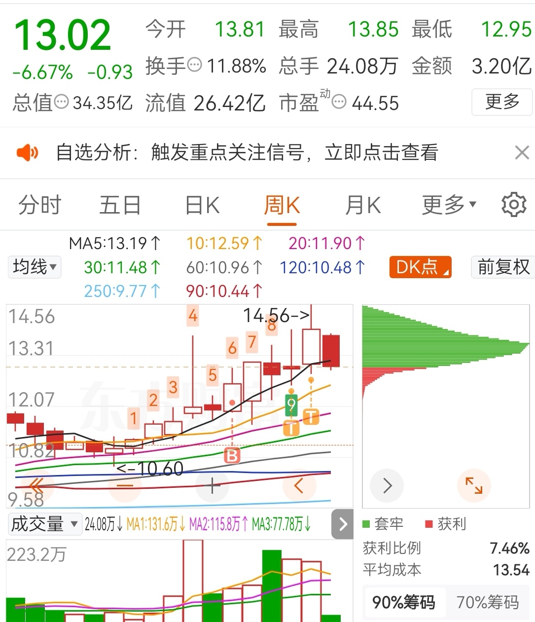 开盘借着大盘利好,获利盘疯狂出逃,一个交易日就把上周涨幅清零。好吧,大部分近期进