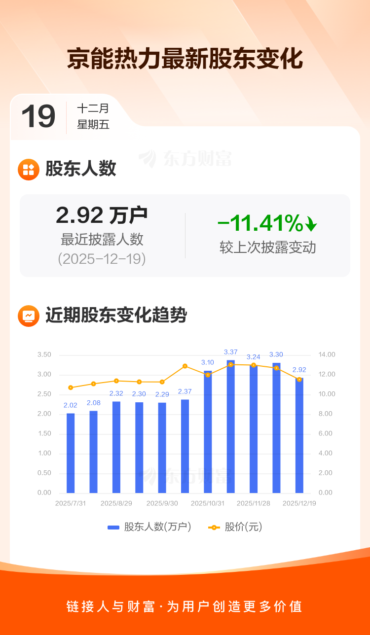 京能热力:截至12月19日最新股东户数2.92万户,较上期减少11.41%
