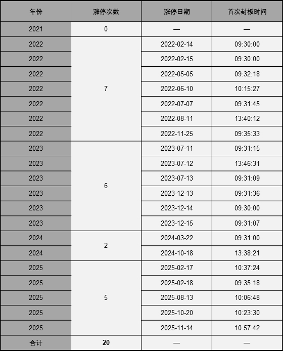 给大家总结下近5年才涨停20次,其中一月份从来没有表现过,另外涨停基本上都是在1