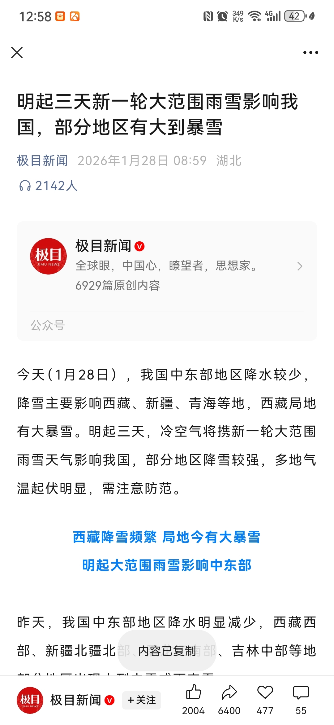 $京能热力(SZ002893)$ 明起三天新一轮大范围雨雪影响我国,部分地区有大到暴雪