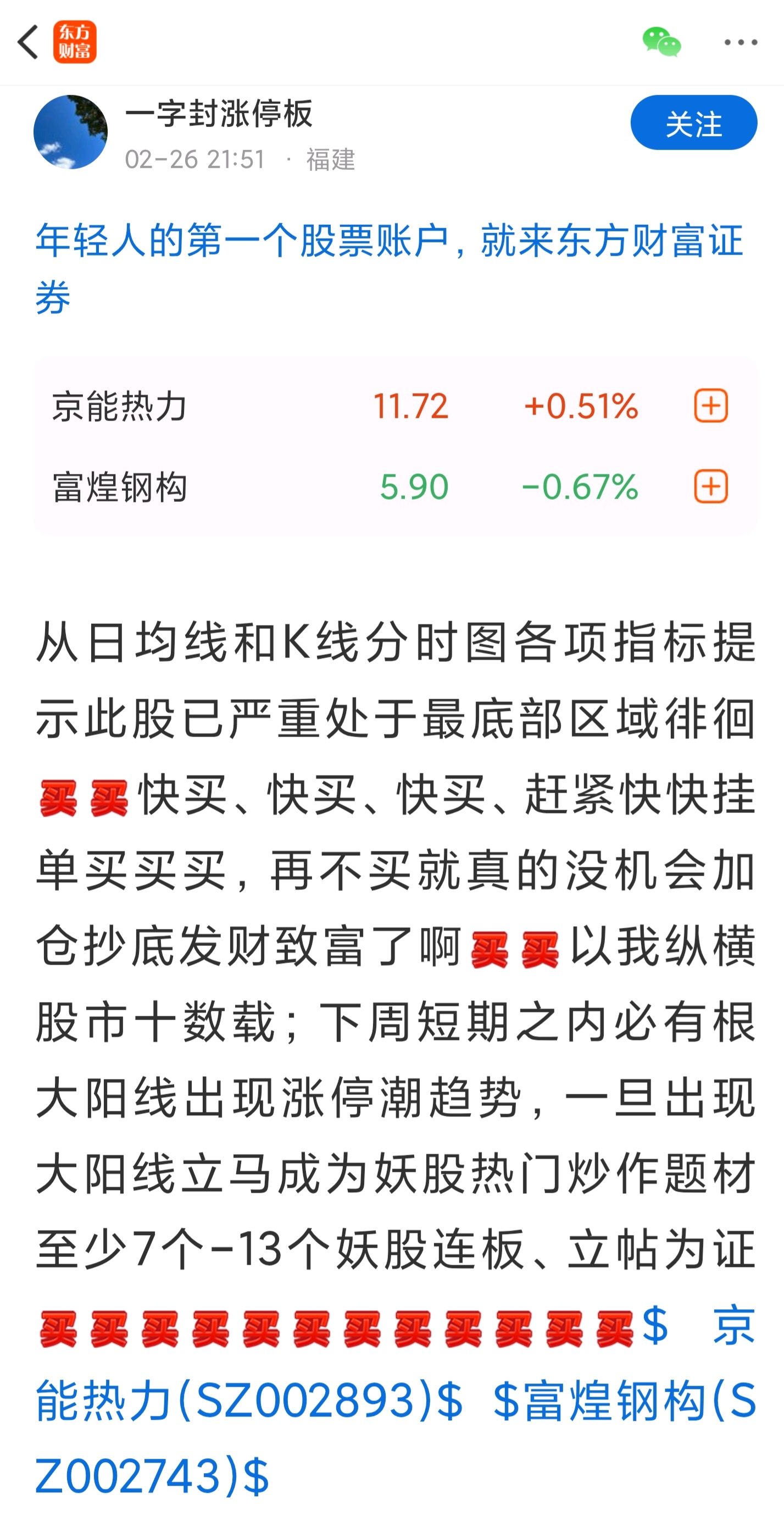 温馨提示: 1.根据《证券法》规定,禁止编造、传播虚假信息或者误导性信息,扰乱证券市场;2.用户在本社区发表的所有资料、言论等仅代表个人观点,与本网站立场无关,不对您构成任何投资建议。用户应基于自己的独立判断,自行决定证券投资并承担相应风险。《东方财富社区管理规定》