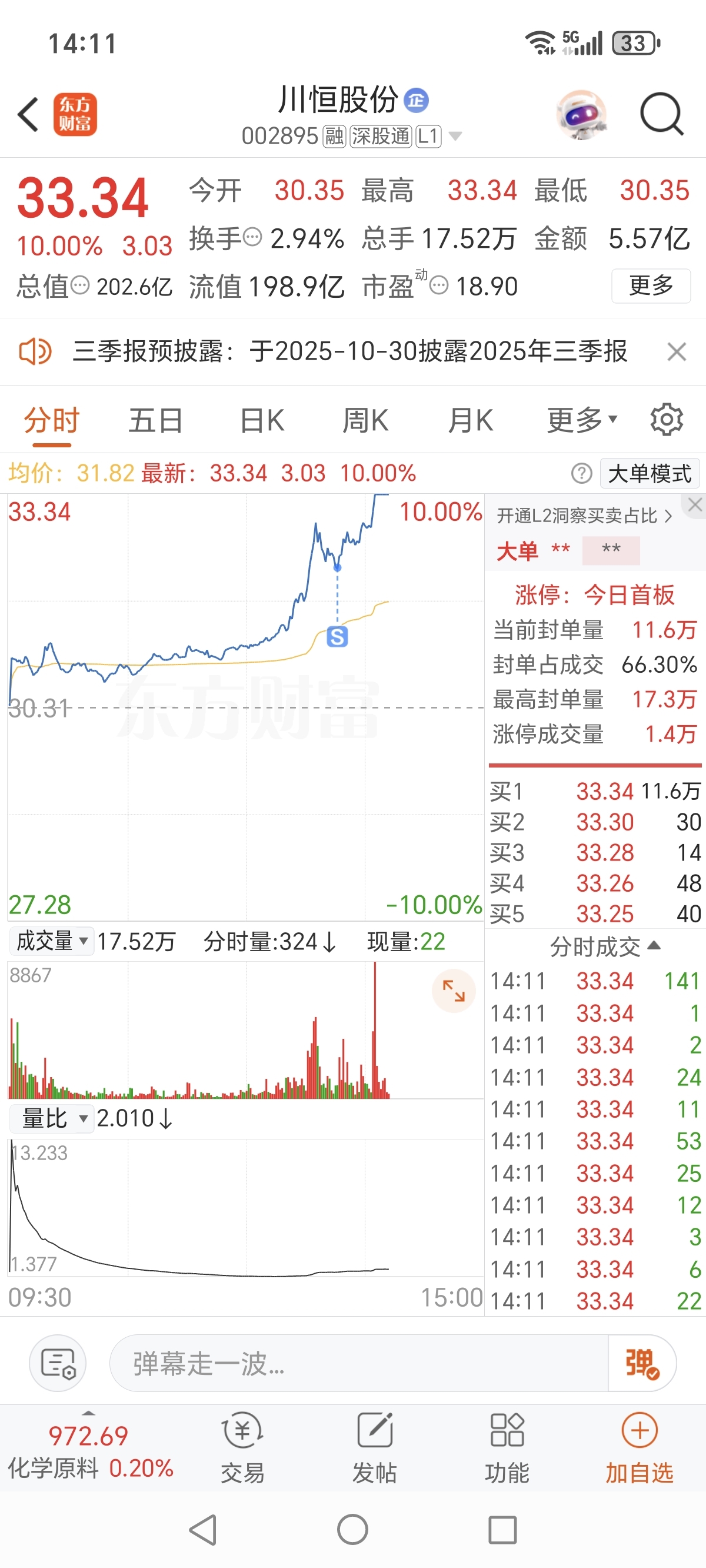 $川恒股份(SZ002895)$ 知道为什么涨停吗?因为我卖了,我是韭菜我自豪
