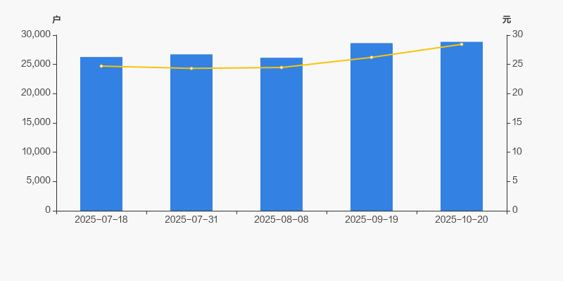 2025年7月18日至今,公司股东户数有所增长,区间涨幅为9.87%。2025年7月18日至2025年10月20日区间股价上涨15.07%。