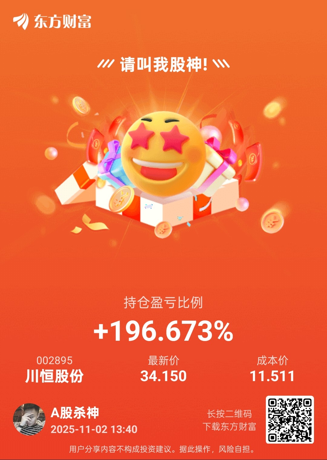 $川恒股份(SZ002895)$ 持股已经大半年了,评论最多的就是那个什么蓝莓的技术派,每天都在高抛低吸,感觉自己是大师,我想问问你到今天赚了几个收益。我一般不想说话,真正的高手一定不会是懂技术的。真心劝你一句,道友,你离悟道还有些路要走。