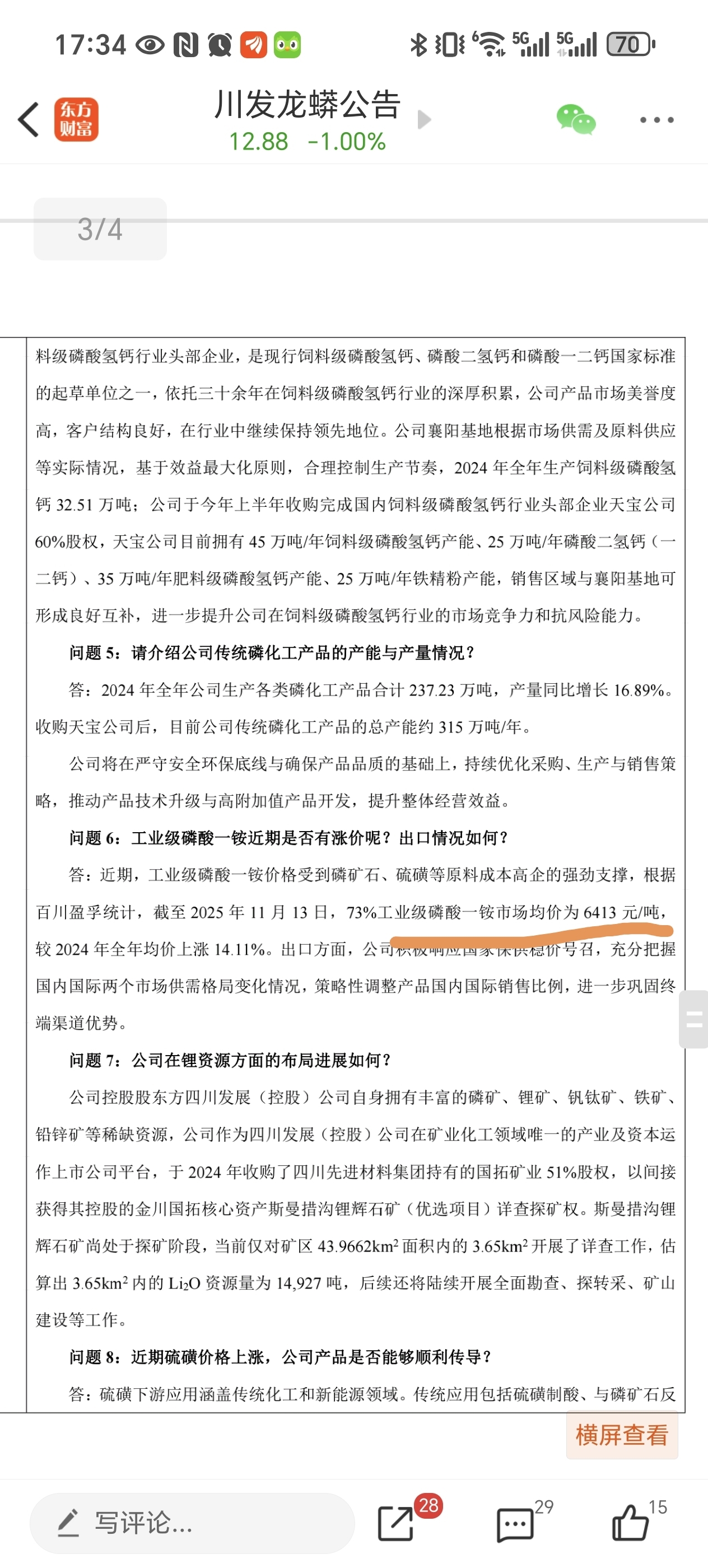 川恒的磷酸一铵毛利44%,龙才20多。涨价的话川恒弹性更大!