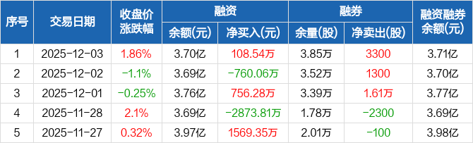 川恒股份:融资净买入108.54万元,融资余额3.7亿元(12-03)