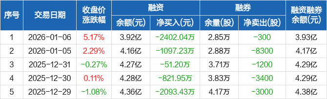 川恒股份:连续5日融资净偿还累计6465.85万元(01-06)