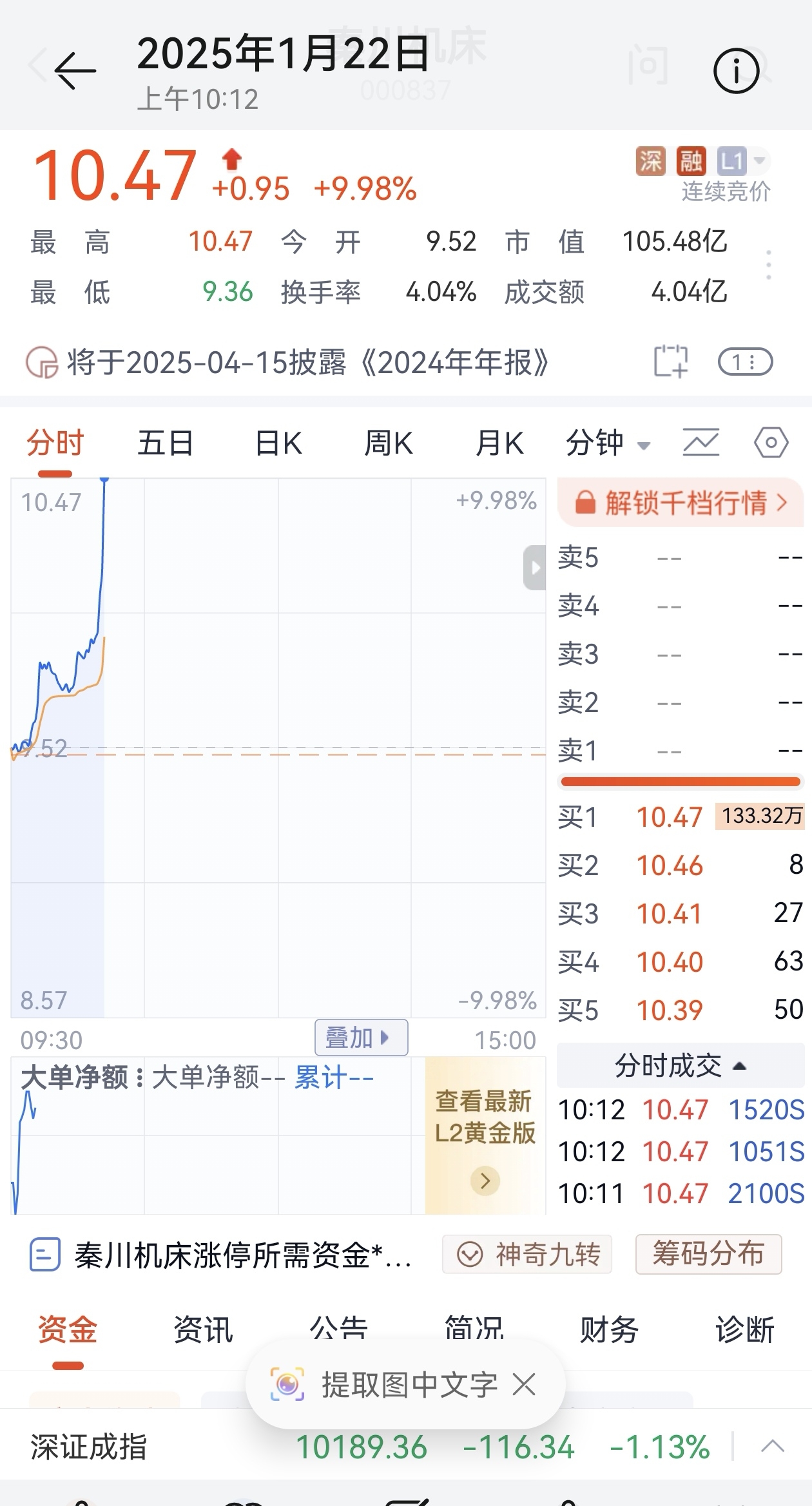 $秦川机床(SZ000837)$ 前天(1.22)涨停板共133万手合计14亿资金巨量封涨停,秦川机床不翻三倍都对不起这个正宗的国资人形机器人、工业母机龙头!
