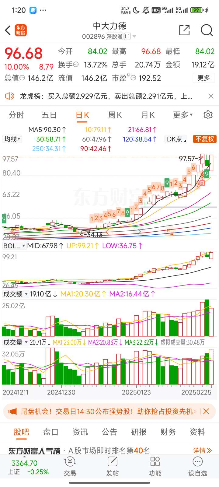 $中大力德(SZ002896)$ 昨天有机会都没出。硬抗。这个行情容易卖飞。