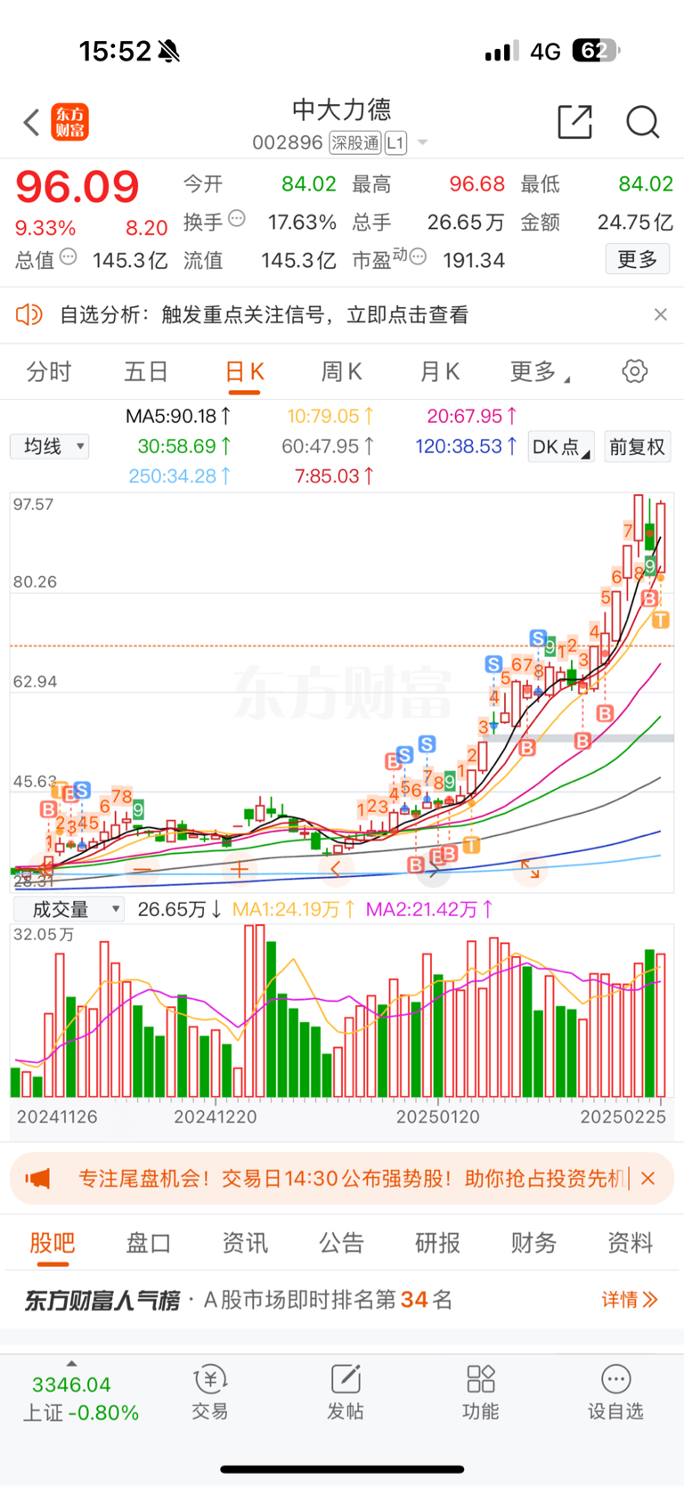 $中大力德(SZ002896)$ 正常看这波先到250-300亿左右的市值吧,概念没他正宗的都比他之前