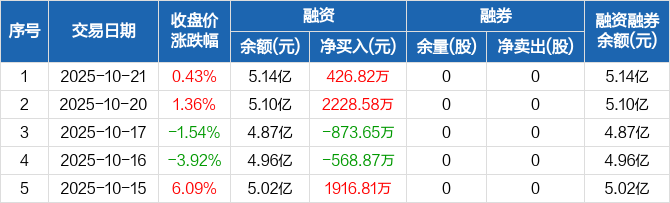 中大力德:融资净买入426.82万元,融资余额5.14亿元(10-21)