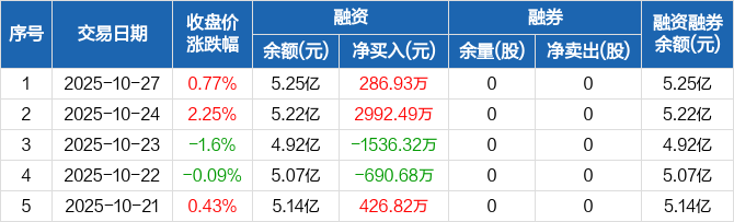 中大力德:融资净买入286.93万元,融资余额5.25亿元(10-27)