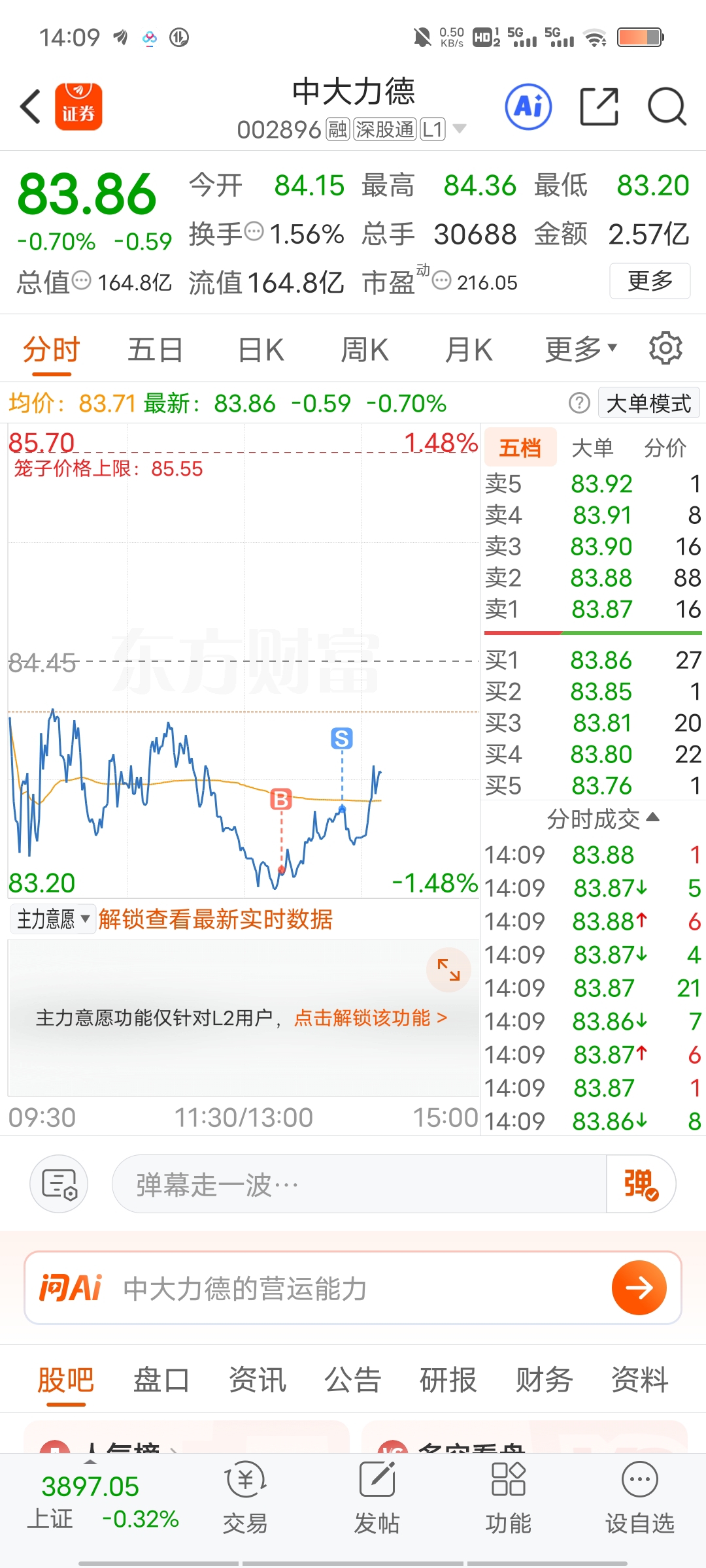 $中大力德(SZ002896)$ 应该等他下去的时候再买进的,没有踢好