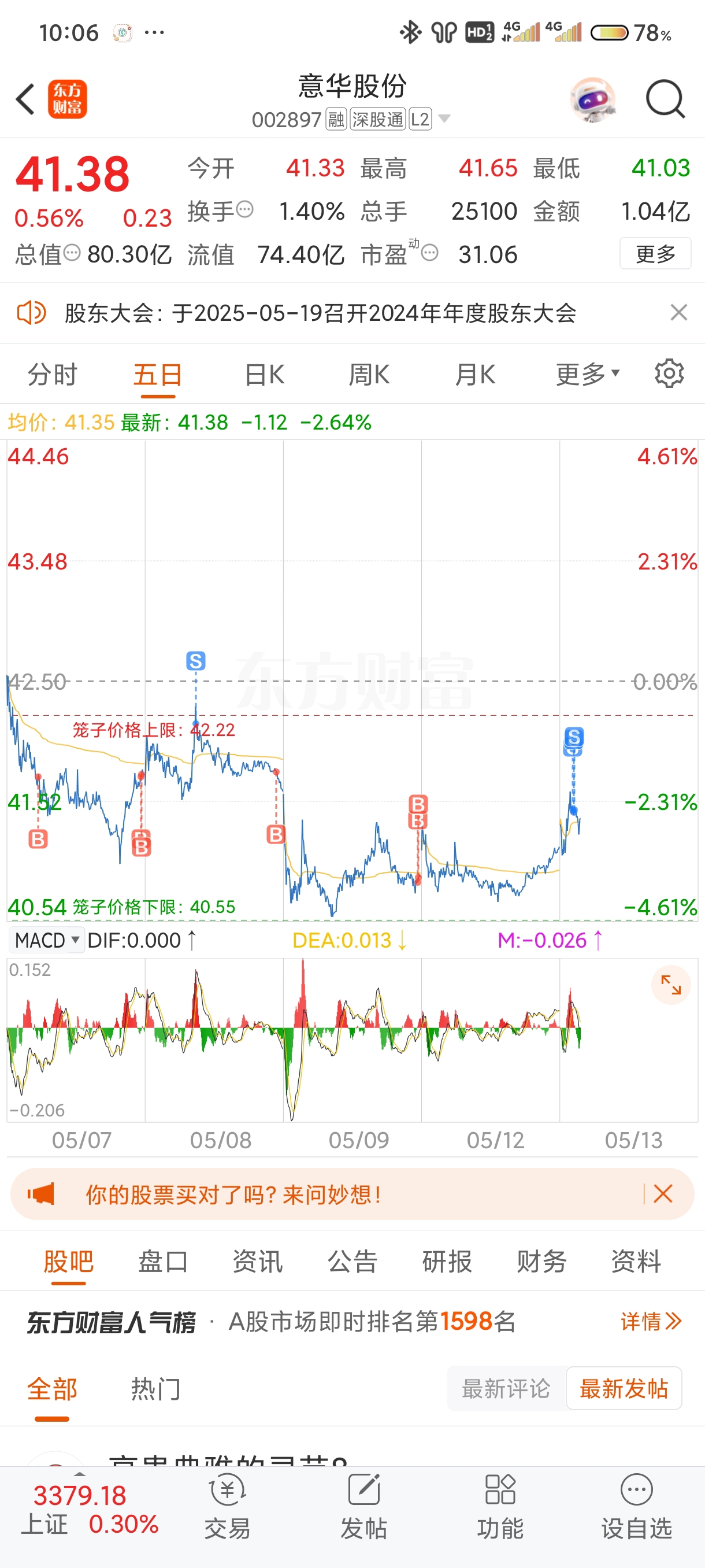 $意华股份(SZ002897)$ 这两天做t的幅度越来越小了,想格局又怕被砸,光伏4个点了都不拉,一旦回调更别说了,不赌它拉上去了,大不了踏空,5月8号尾盘建仓到5月13号拉高卖出,获利600,外面捡钱行情,这里乞讨行情
