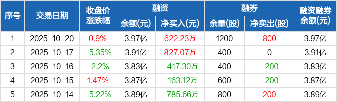 意华股份:融资净买入622.23万元,融资余额3.97亿元(10-20)