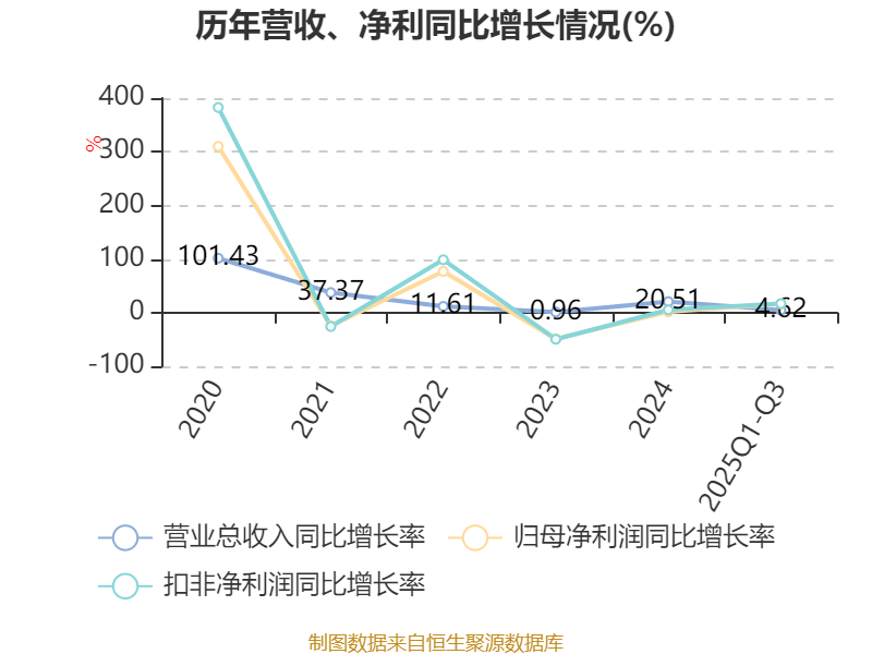 资产重大变化方面,截至2025年三季度末,公司交易性金融资产合计较上年末减少97.74%,占公司总资产比重下降4.2个百分点;应收票据及应收账款较上年末增加27.77%,占公司总资产比重上升3.18个百分点;存货较上年末增加25.57%,占公司总资产比重上升3.03个百分点;固定资产较上年末增加6.04%,占公司总资产比重下降0.87个百分点。