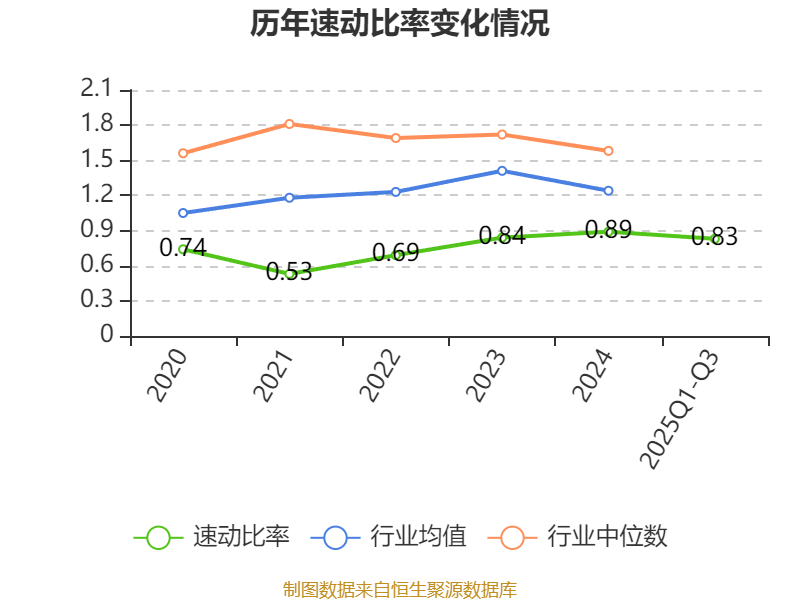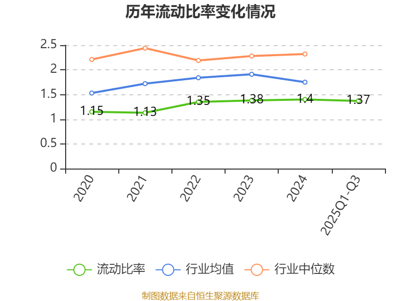2025年前三季度,公司流动比率为1.37,速动比率为0.83。