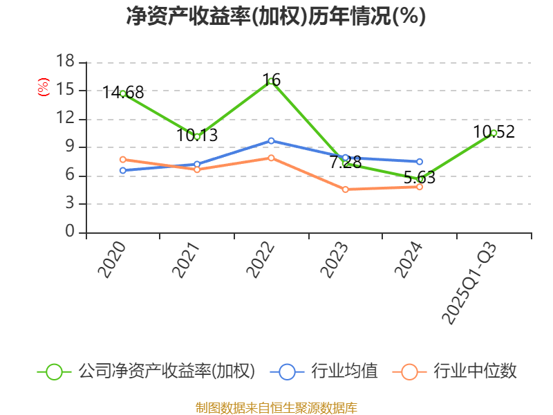 盈利能力方面, 2025年前三季度公司加权平均净资产收益率为10.52%,同比下降0.07个百分点。公司2025年前三季度投入资本回报率为6.5%,较上年同期下降0.35个百分点。