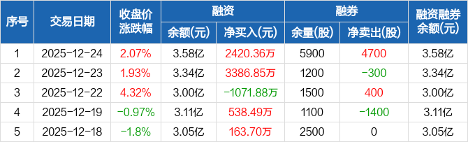 意华股份:融资净买入2420.36万元,融资余额3.58亿元(12-24)