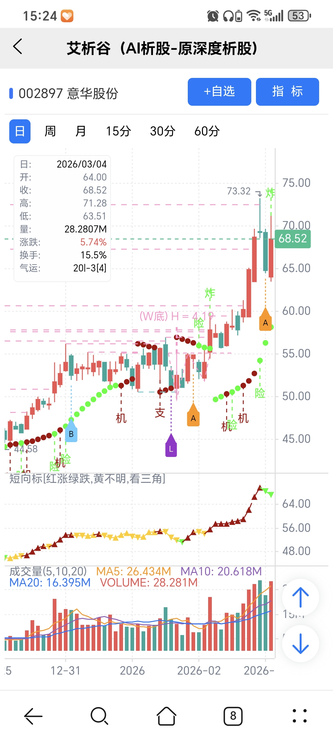 风险:股价下穿艾短波或红变绿、绿字。