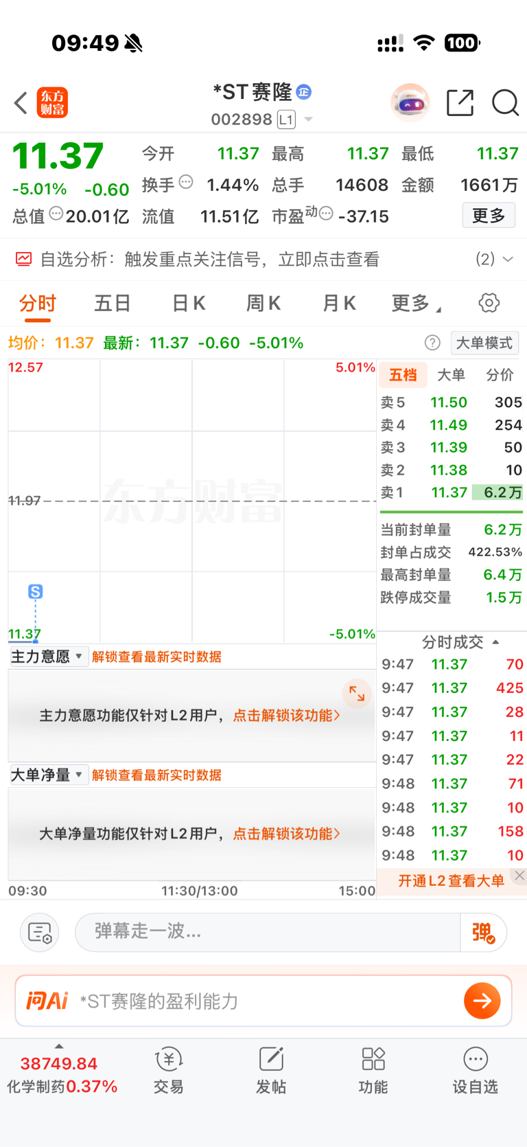 $*ST赛隆(SZ002898)$ 好事还是坏事,跑了半仓,剩下的不管了,反正都是荣控赚的利润