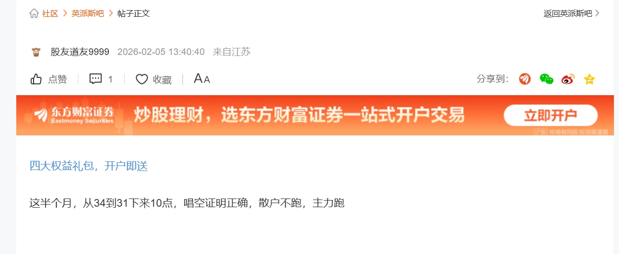 温馨提示: 1.根据《证券法》规定,禁止编造、传播虚假信息或者误导性信息,扰乱证券市场;2.用户在本社区发表的所有资料、言论等仅代表个人观点,与本网站立场无关,不对您构成任何投资建议。用户应基于自己的独立判断,自行决定证券投资并承担相应风险。《东方财富社区管理规定》