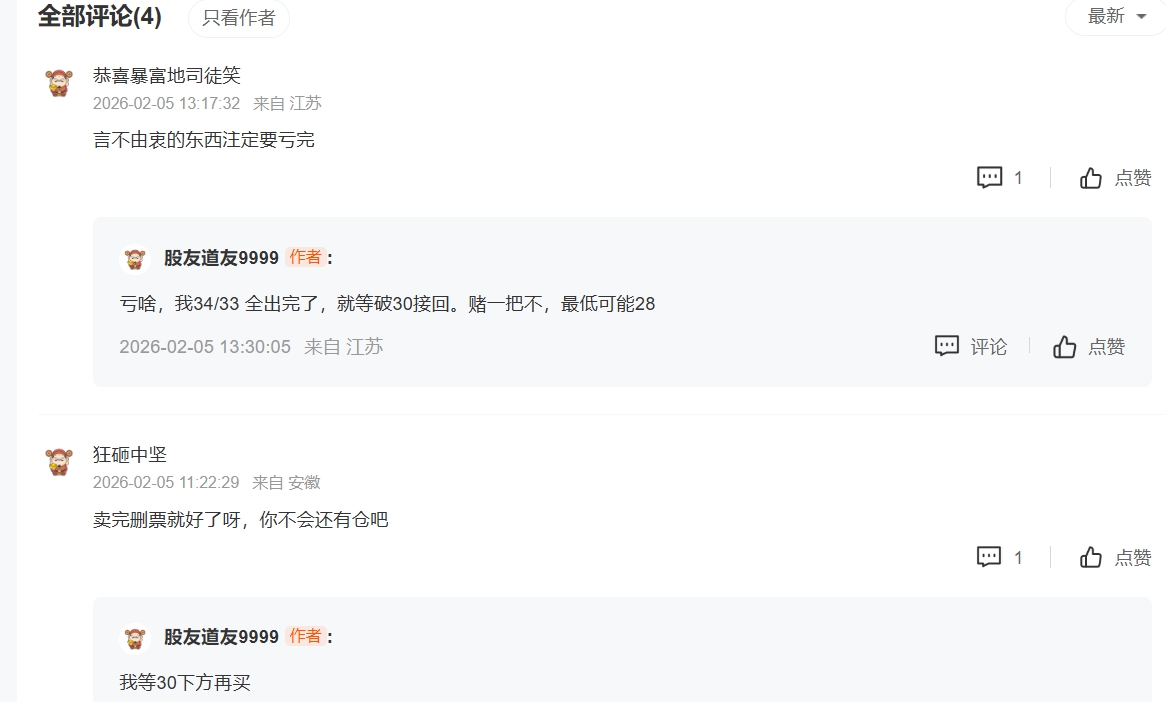 把10%的股价正常波动当做自己唱空成功 费老大劲脸都不要什么恶毒的话都说就只为了便宜小几块钱买回来 自己观点都相冲 一会诅咒30的股价套十年 一会又说自己28买回 一会说主力跑了 一会又想着28买回