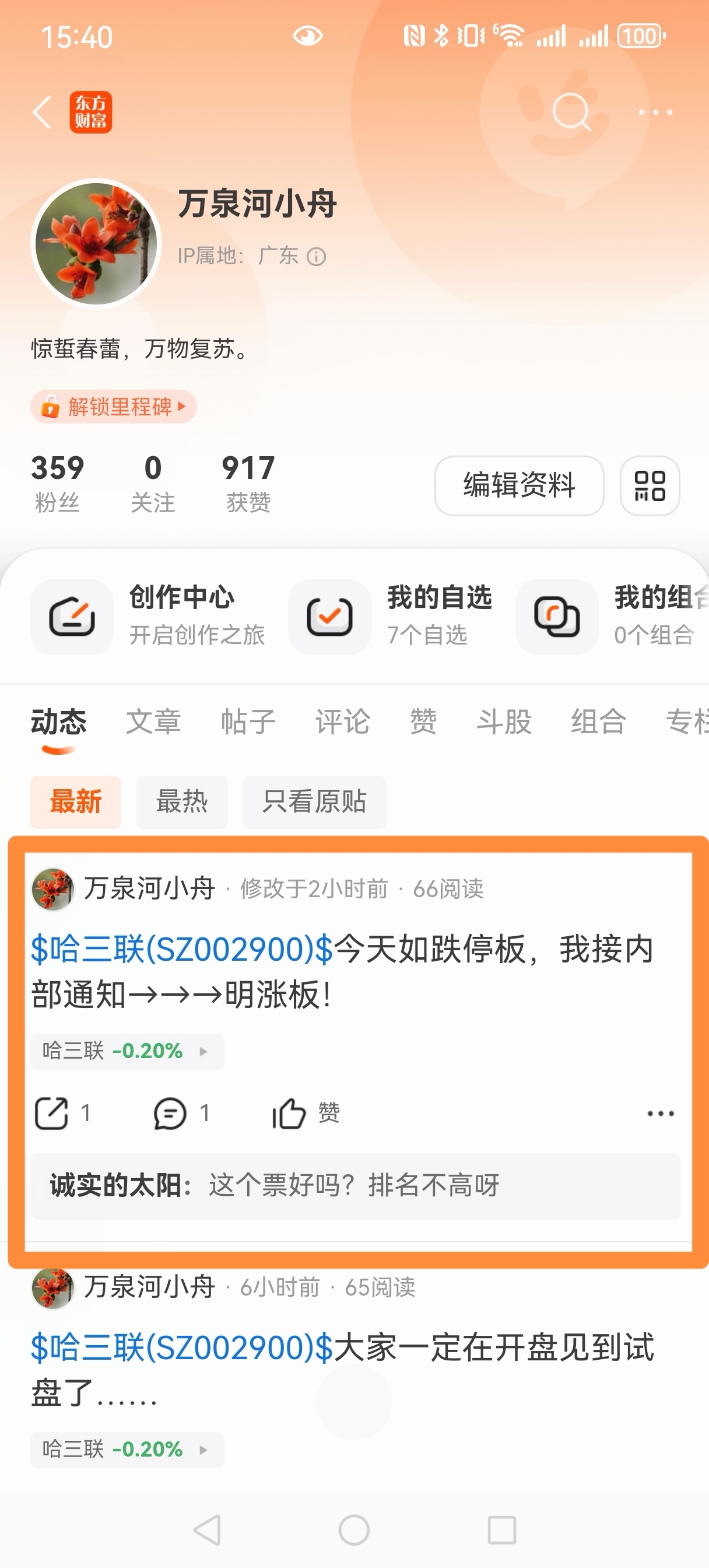 $哈三联(SZ002900)$ 一个股票好不好,不是看“股票排名靠前例!“,而是看必要条件在“财务报表的资金排名是否为正值”;再看充要条件是否具备时代主题大题材;二合而一医药题材属于我国未来的时代大题材,股价必将过贵卅茅台不是玫瑰花花梦!眼下最重要是关系到明天多头力道是否强大→→→决定明天是否强势(涨停板)。这里有一个公式是:多头力道强度=今天最高价一昕天收盘价,通过计算值得出是否超过临界值才决定明天是否强,这是最科学的结论而不是“靠排名“来决定的,明白吗???