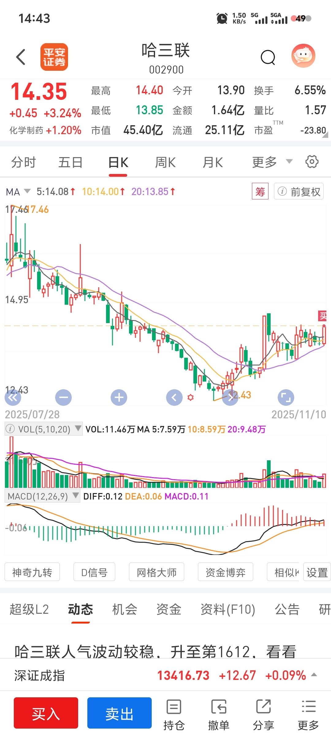 ,只不过四季度工作太忙,就中午吃饭有时间复盘,感觉哈三联今天走出一个空翻多的形态,而且是第三次回踩20日线走出的空翻多,再一再二不再三,希望明天它能给我长长脸吧!干活去了