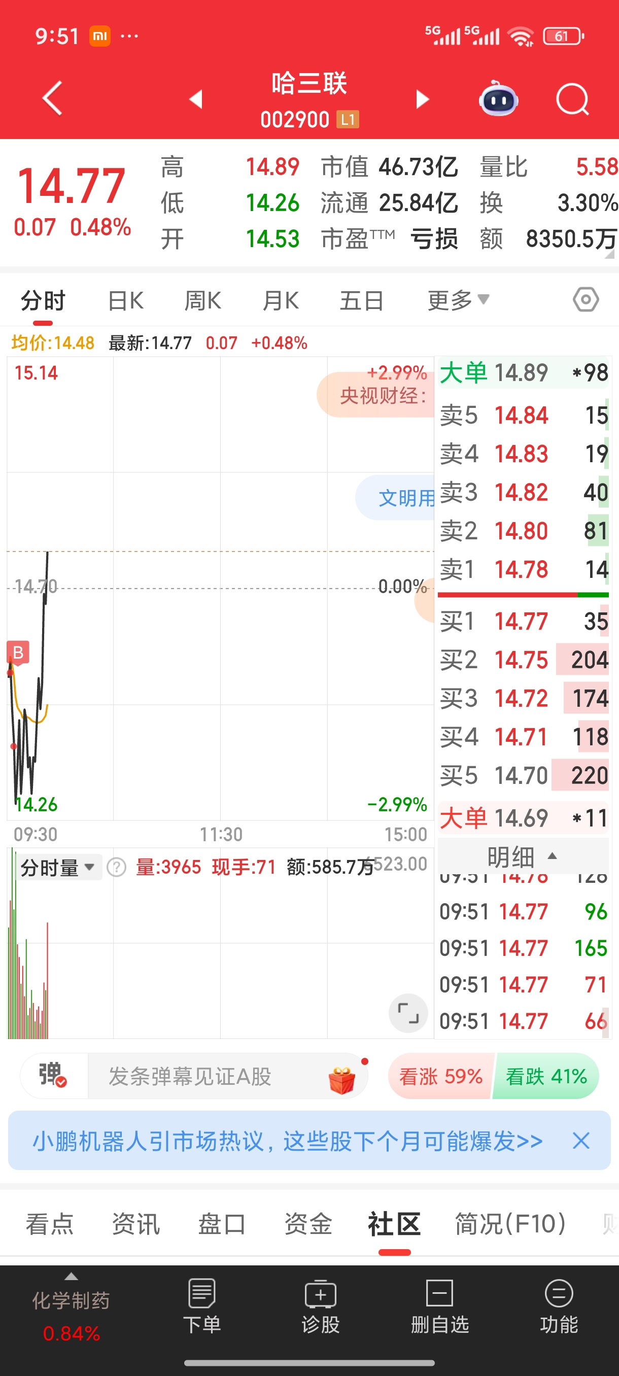 $哈三联(SZ002900)$ 昨天减的今天全接回