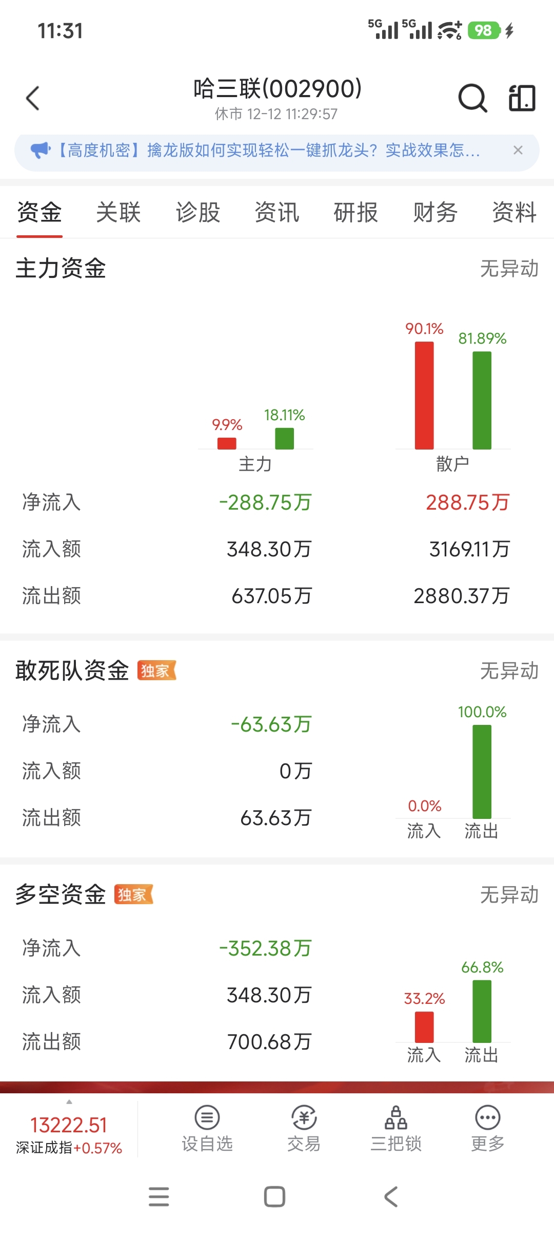$哈三联(SZ002900)$ 全是散户买,主力扔