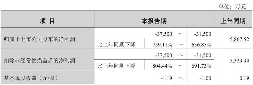 1月28日,哈三联(002900)发布公告,预计2025年度约亏损3.15亿元至3.75亿元,较上年同期下降636.85%至739.11%。详细数据如下: