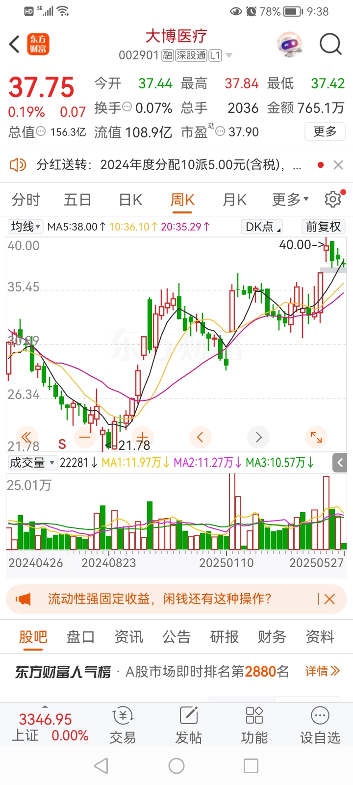 $大博医疗(SZ002901)$ 看这个周k线不跌到35鬼都不相信