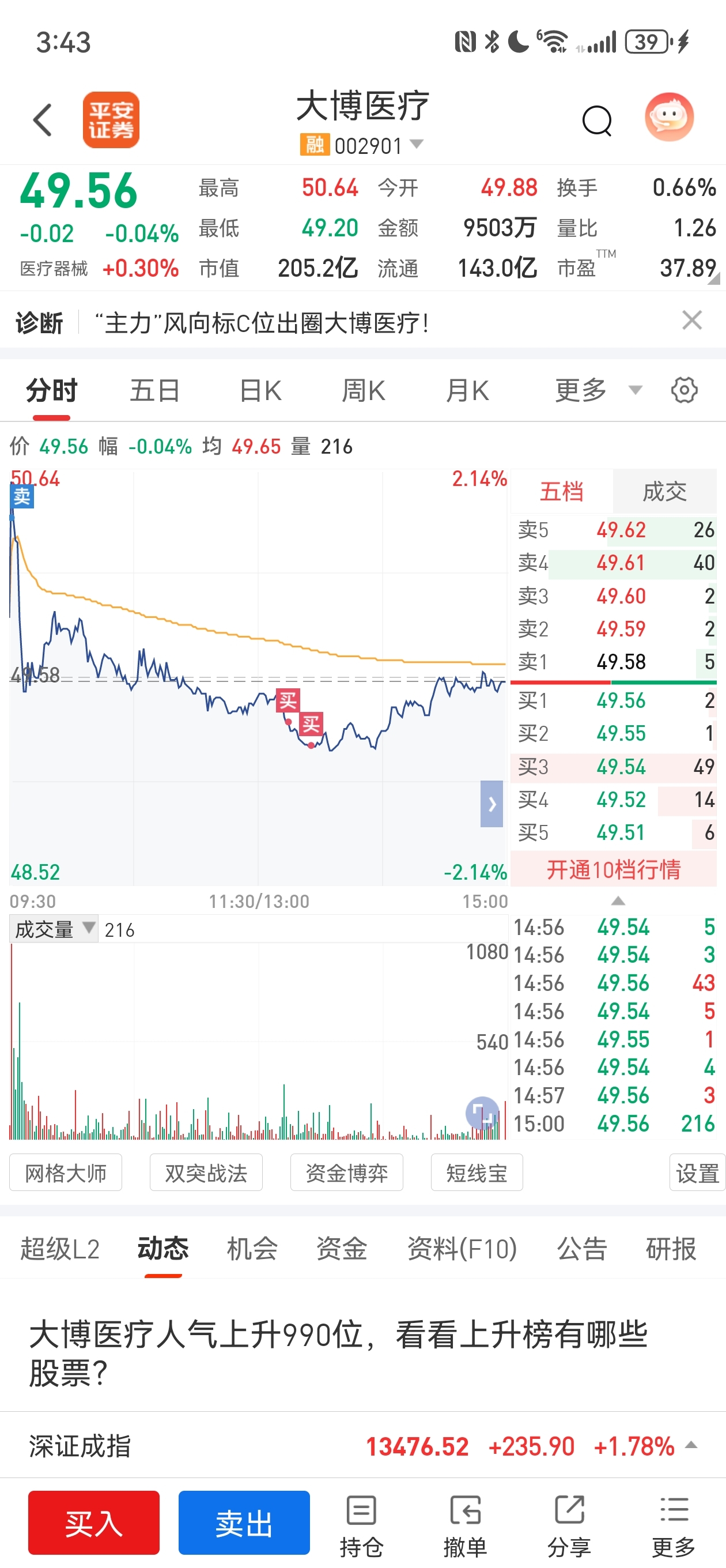 $大博医疗(SZ002901)$ 最近需要一个53.5以上的阳线,就在最近