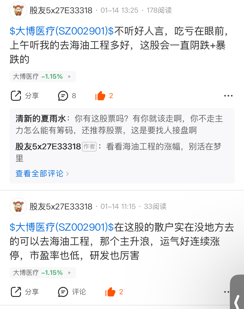 温馨提示: 1.根据《证券法》规定,禁止编造、传播虚假信息或者误导性信息,扰乱证券市场;2.用户在本社区发表的所有资料、言论等仅代表个人观点,与本网站立场无关,不对您构成任何投资建议。用户应基于自己的独立判断,自行决定证券投资并承担相应风险。《东方财富社区管理规定》