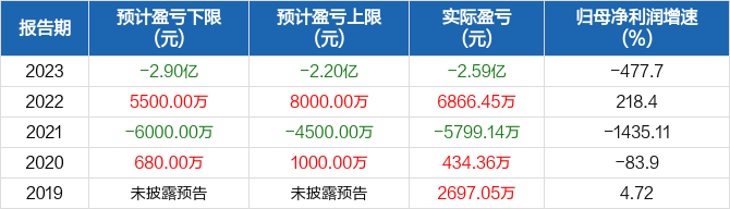 2025年01月18日,铭普光磁发布2024年年度业绩预告,预计年度归属于上市公司股东的净利润为-3.5亿元至-2.5亿元;扣除非经常性损益后的净利润为-3.61亿元至-2.61亿元。
