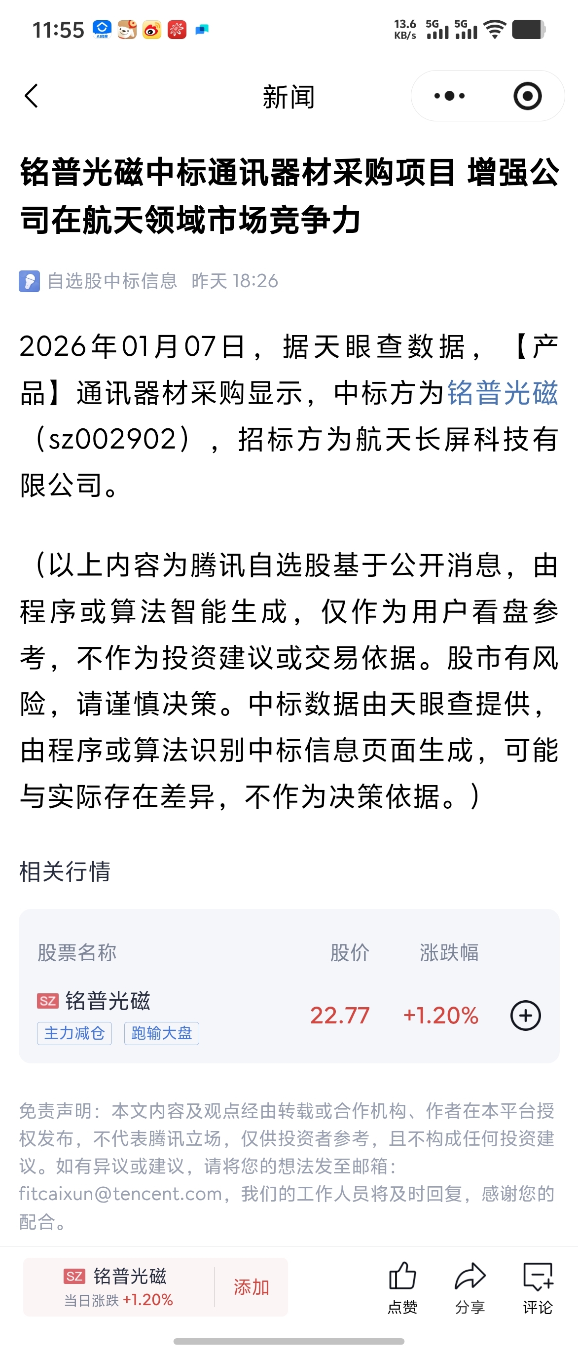 $铭普光磁(SZ002902)$ 中标了为什么不发公告?