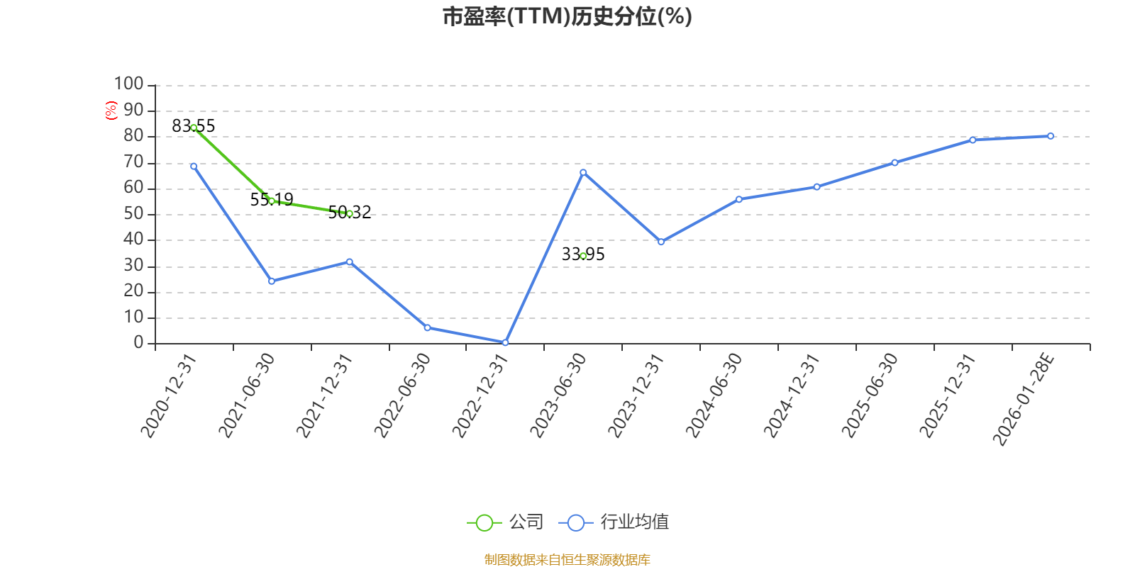 以本次披露业绩预告均值计算,公司近年市盈率(TTM)图如下所示: