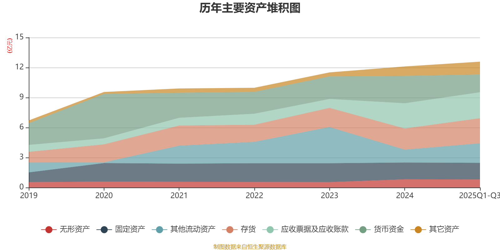 资产重大变化方面,截至2025年三季度末,公司货币资金较上年末减少35.2%,占公司总资产比重下降8.55个百分点;其他流动资产较上年末增加52.01%,占公司总资产比重上升4.92个百分点;在建工程合计较上年末增加1014.65%,占公司总资产比重上升2.56个百分点;存货较上年末增加18.56%,占公司总资产比重上升2.45个百分点。