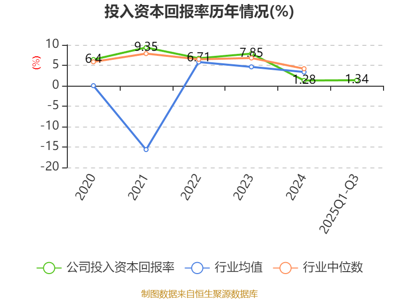 盈利能力方面, 2025年前三季度公司加权平均净资产收益率为0.38%,同比下降1.29个百分点。公司2025年前三季度投入资本回报率为1.34%,较上年同期上升0.07个百分点。