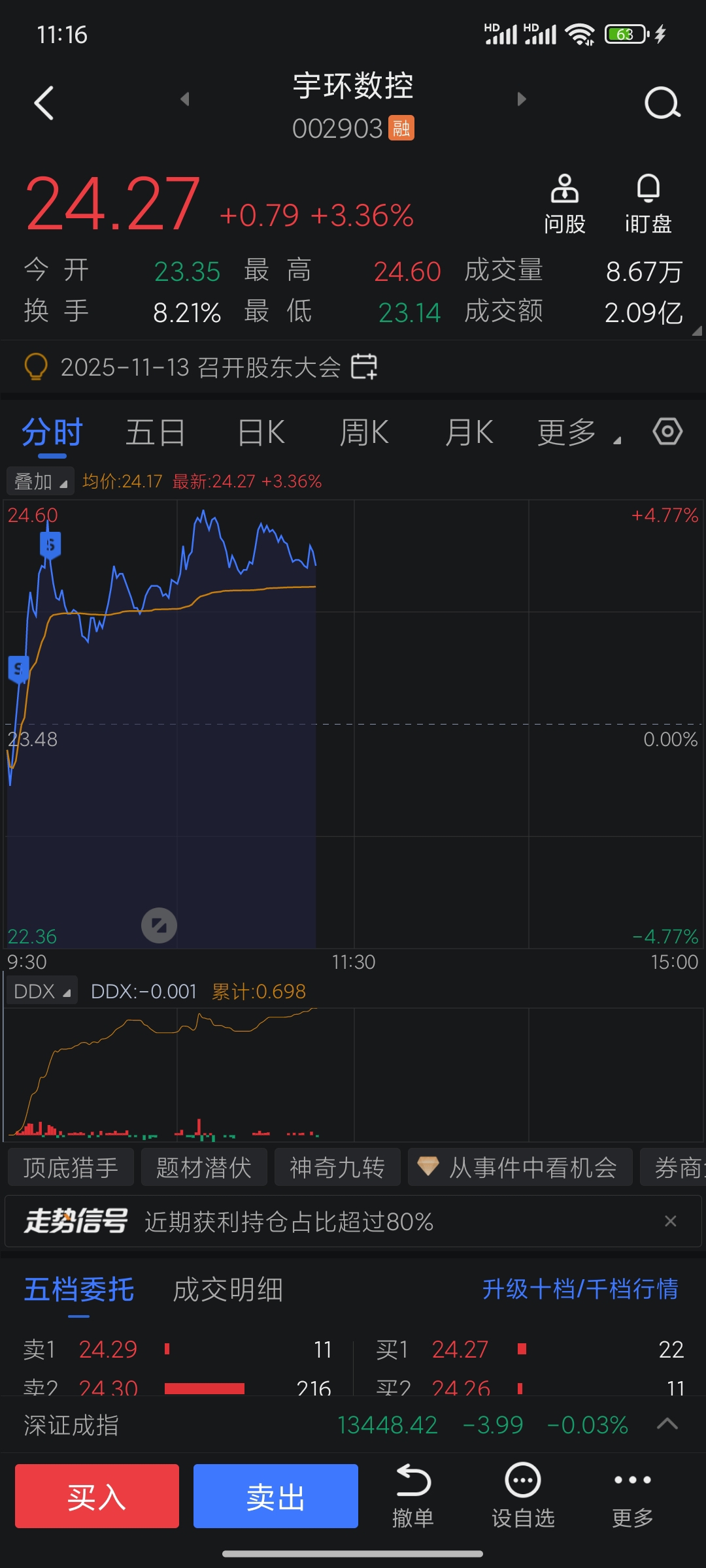 $宇环数控(SZ002903)$ 做个及格的韭菜