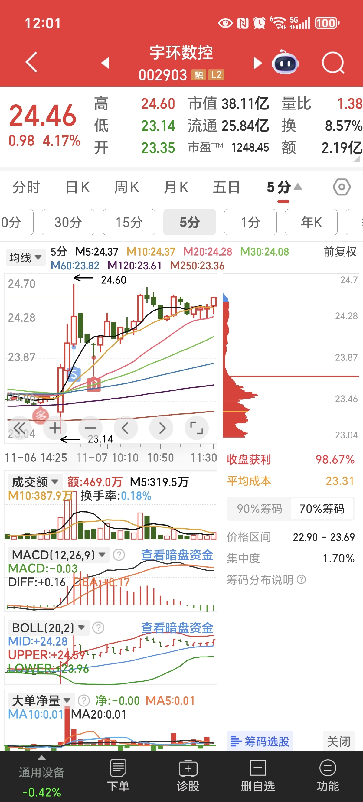 $宇环数控(SZ002903)$ 踢了0.36元等于1.5个点。一万股也三千多差价呢。
